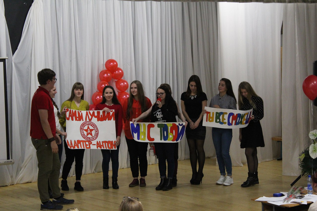 . Всё это время 7 активистов помогали своим адаптятам справиться с начальными трудностями студенческой жизни. Но пришла пора выбрать лучшего из них. 13 октября в ПетрГУ адаптеры прошли свое последнее испытание – выступили на сцене, предоставив отчет о своей работе перед другими активистами, а главное, своими адаптятами! И Лучшим адаптером Института математики и информационных технологий 2017 становится Рыбаков Кирилл! А в номинации Народный Любимец победителем становится Донова Елизавета! Поздравляем победителей и благодарим всех ребят за их проделанную работу!